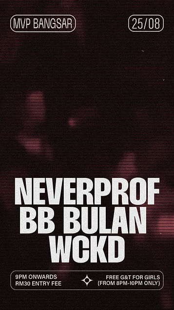 WCKD is a Malaysian DJ who emerged from Kuala Lumpur’s underground scene, breaking boundaries across genres like Techno, Hard Groove, Psytrance, and House. His sets focus on progression and adaptability, taking the crowd on a journey while keeping the dancefloor connected. He has supported international and regional names such as Cera Khin, Caravel, Pan-Pot, and Neux. Beyond the decks, WCKD co-founded Dining Room KL, a platform that supports local DJs and showcases the city’s emerging talent.